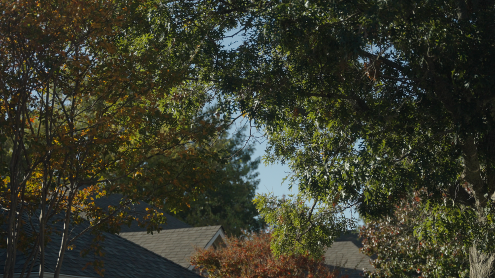 Fall Foliage Over Roofs in Residential Sherman